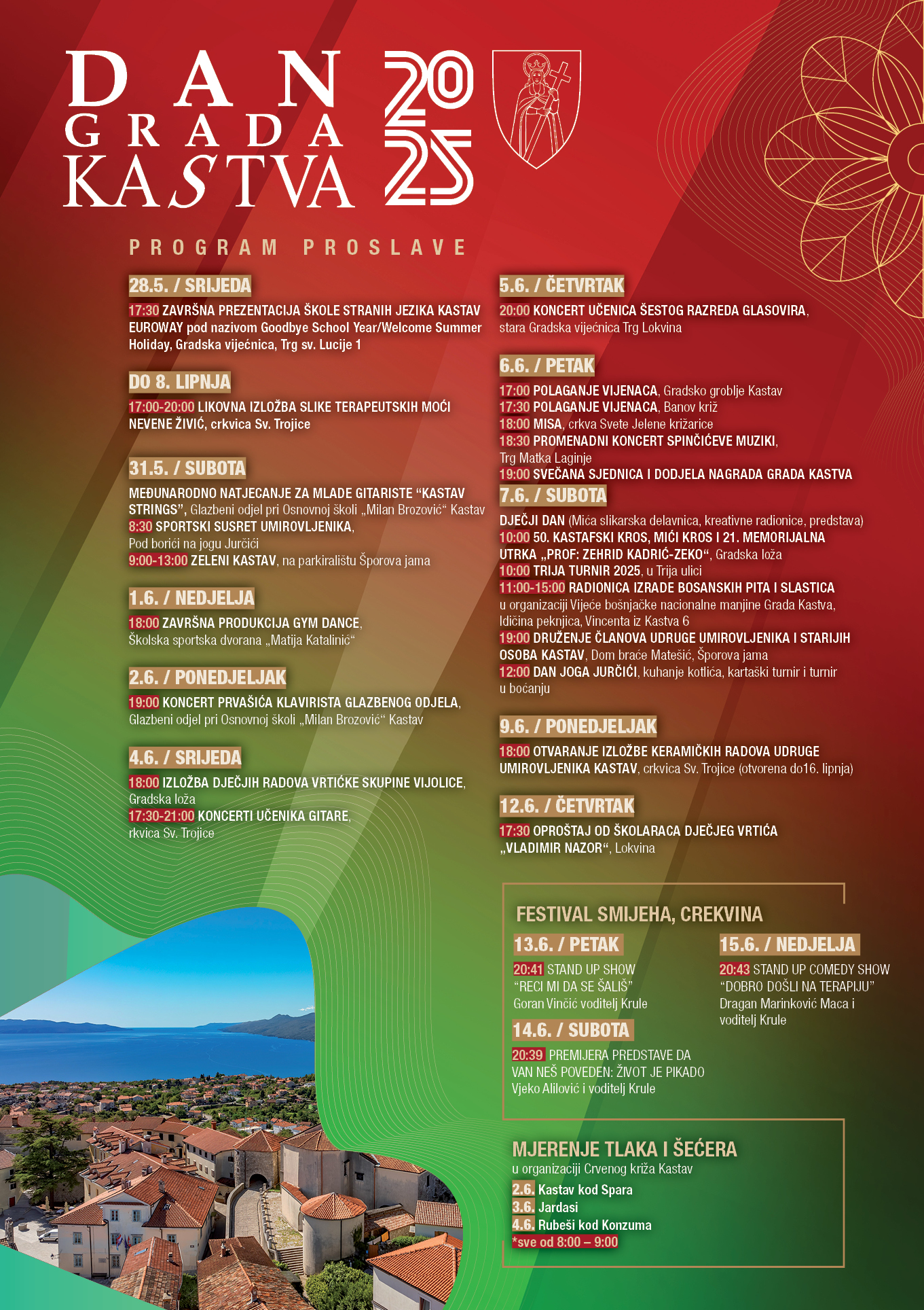 Program obilježavanja Dana grada Kastva trajat će sve do sredine lipnja s mnogobrojnim kulturnim, zabavnim i sportskim manifestacijama.