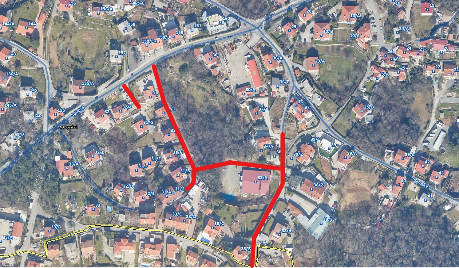 U Spinčićima će se radovi odvijati kod kućnih brojeva 64 do 75/B, a u Tometićima kod kućnih brojeva 31 do 32/1, te 37/A do 38/B. Skice obuhvata radova su u prilogu.