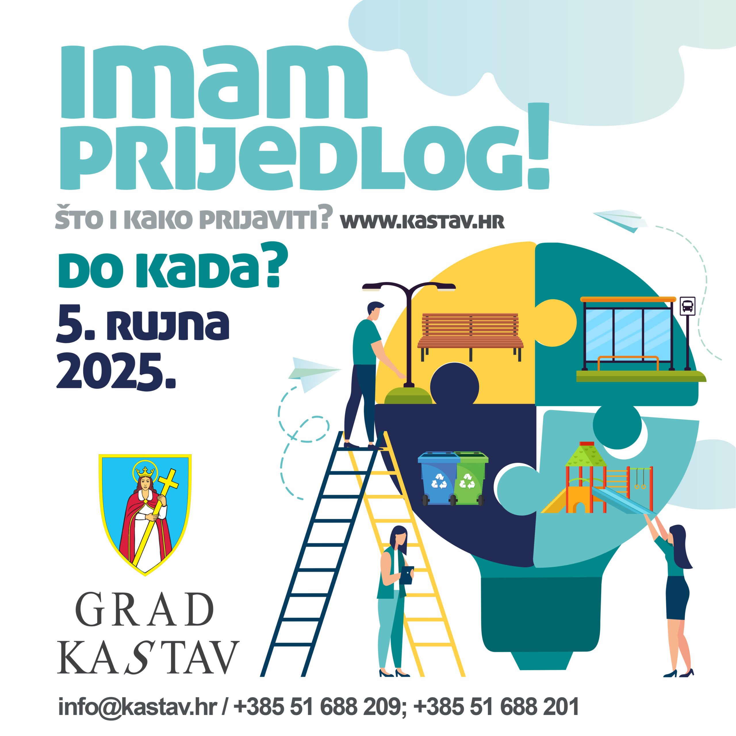 Pozivaju se građani Grada Kastva, ovlašteni predstavnici suvlasnika stambeno-poslovnih zgrada te mjesni odbori s područja Kastva na podnošenje prijedloga manjih komunalnih zahvata radi izrade Prijedloga plana komunalnih prioriteta za 2026. godinu.