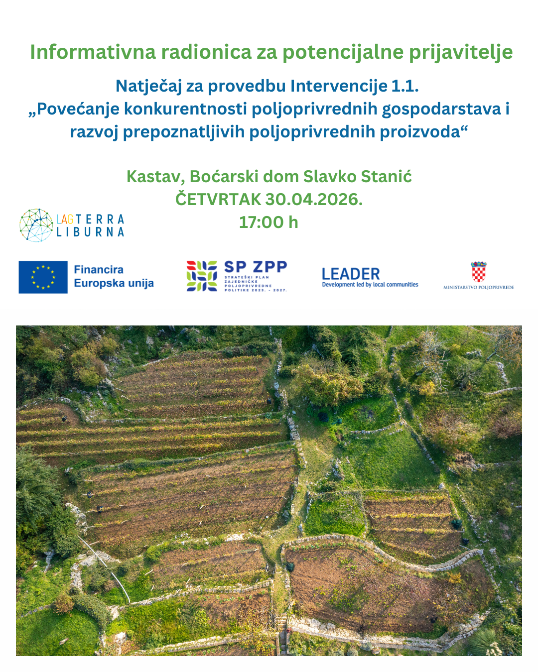 AG „Terra liburna“ organizira informativnu radionicu za 3. Natječaj za provedbu intervencije 1.1. „Povećanje konkurentnosti poljoprivrednih gospodarstava i razvoj prepoznatljivih poljoprivrednih proizvoda“ iz Lokalne razvojne strategije LAG-a Terra liburna 2023.–2027.