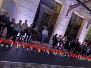 Uoči Dana sjećanja, riječki kolodvor osvijetljen je u bojama hrvatske zastave. Ovu posebnu inicijativu organizirala je UDRUGA BRANITELJA DOMOVINSKOG RATA HRVATSKIH ŽELJEZNICA RIJEKA, uz podršku Primorsko-goranske županije i HŽ Infrastrukture d.o.o. U ponedjeljak se ovom događaju pridružilo 50-ak učenika OŠ Milana Brozovića iz Kastva.