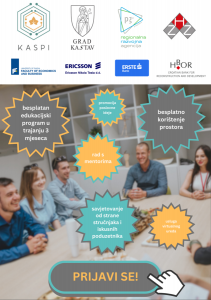 - 3 mjeseca besplatnog edukacijskog programa na temu poslovanja, financiranja, razvoja proizvoda i usluga, marketinga, novih tehnologija i dr.;
