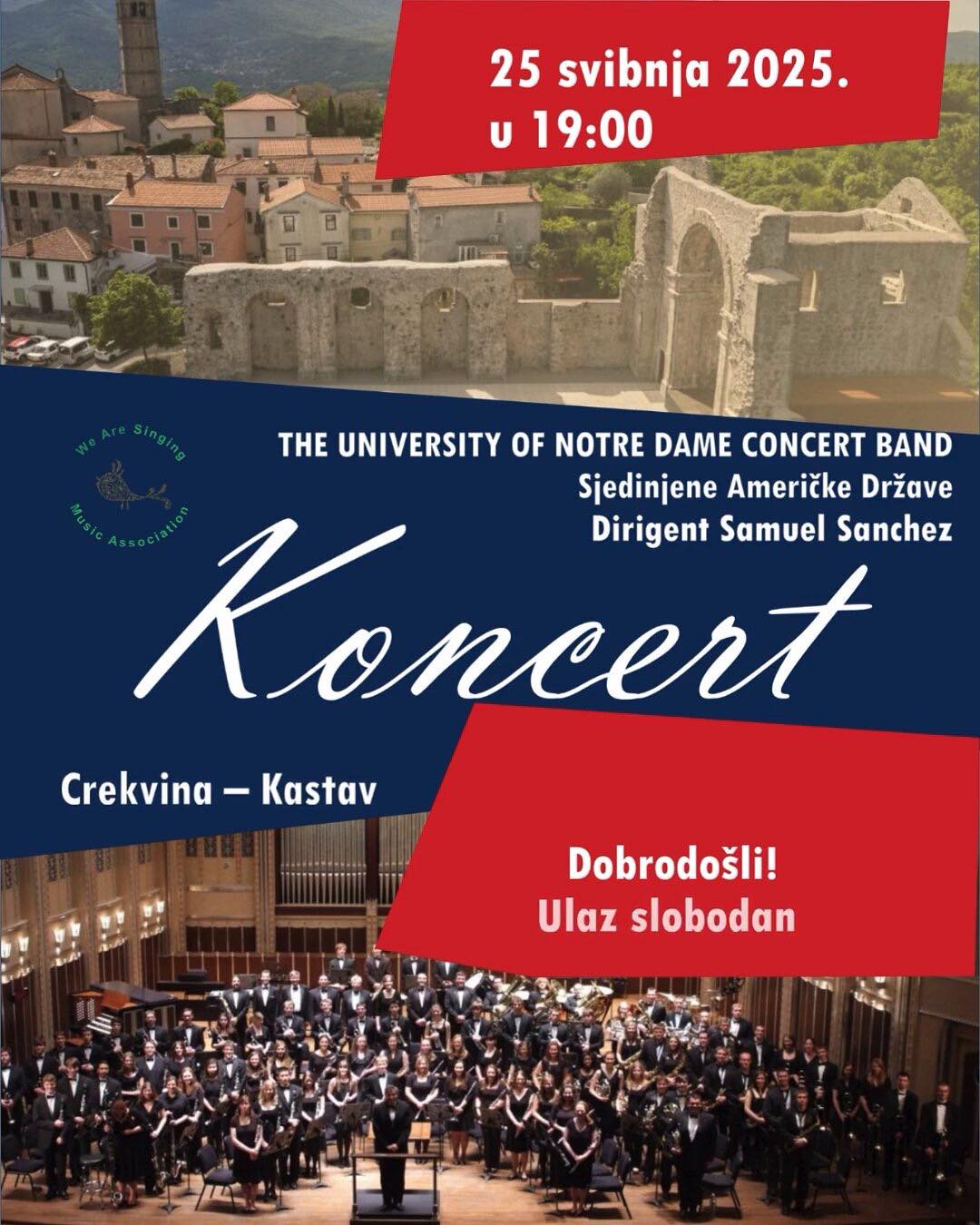 U subotu 25. svibnja u 19:00 sati na Crekvini nastupa The University of Notre Dame Concert Band – jedan od najpoznatijih sveučilišnih orkestara iz SAD-a.